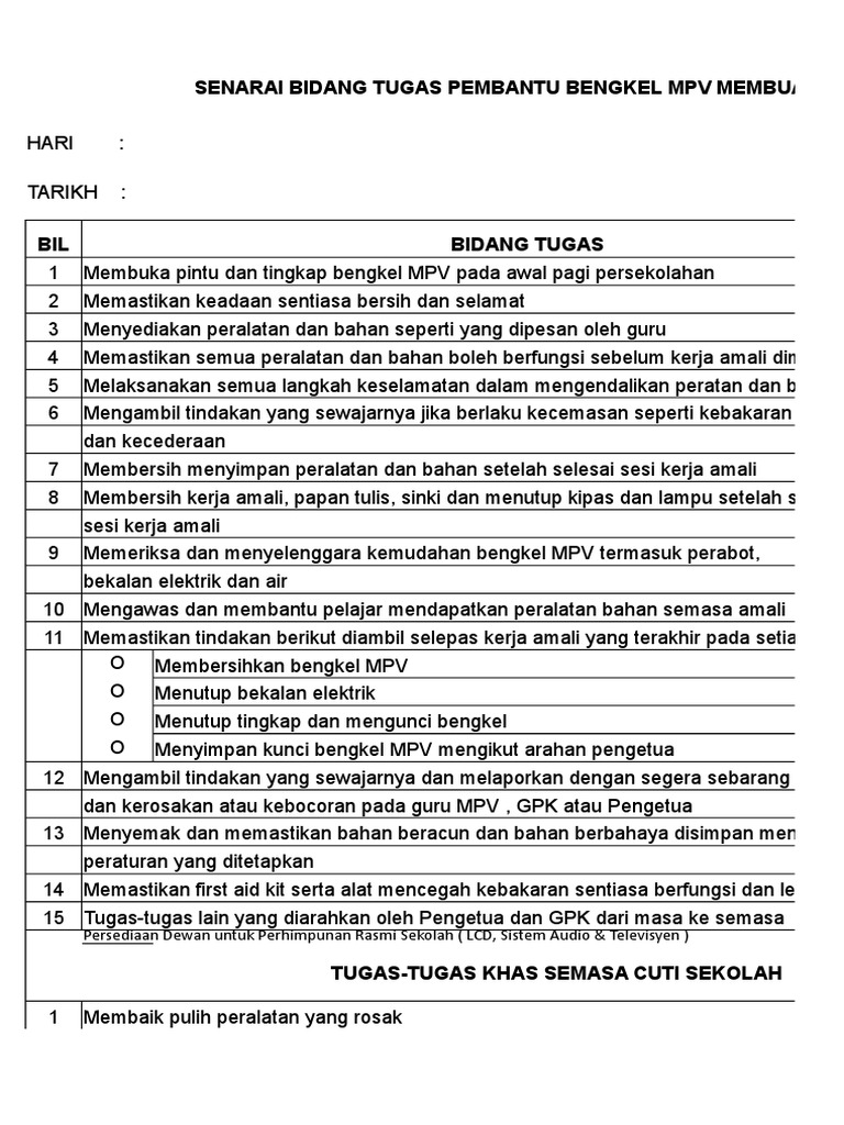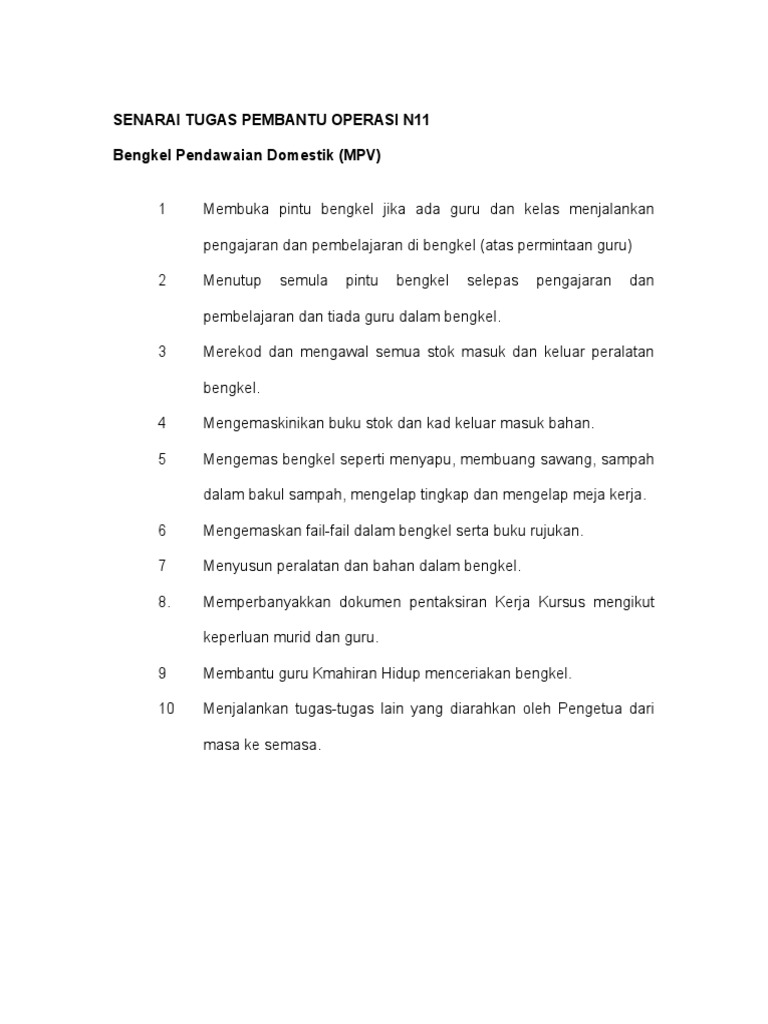 Senarai Tugas Pembantu Operasi Mpv 2 Pdf