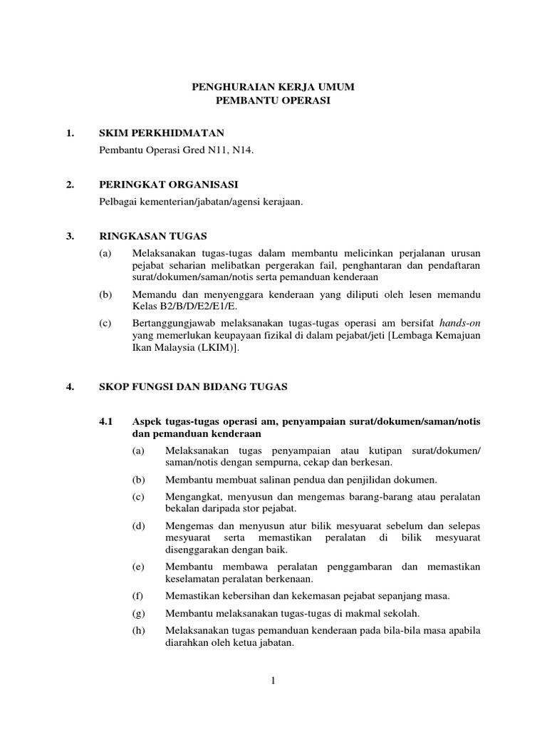 Senarai Tugas Pembantu Operasi Gred N11 Pembantu Awam Gred H11 Pdf Pdf